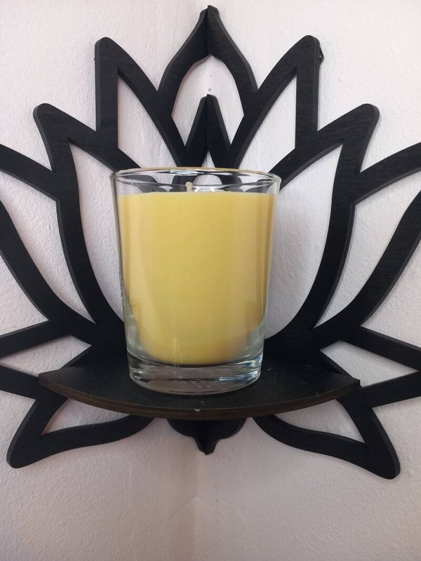 Bougie dans un verre transparent de 220 gr. La cire s'est un peu décollée du contenant. Cela n'altère en rien sa combustion ou son parfum, c'est juste un défaut esthétique.